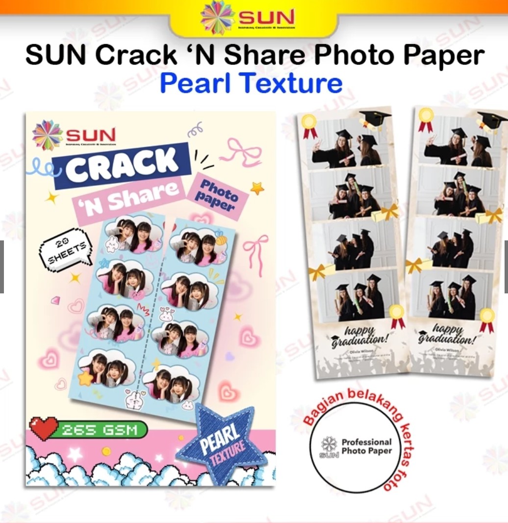 Salah satunya kamu bisa gunakan kertas Sun Crack ‘N Share Photo Paper 4R Ultra Putih kertas ini bisa digunakan diberbagai jenis printer injket merk Epson, Canon, dsb.